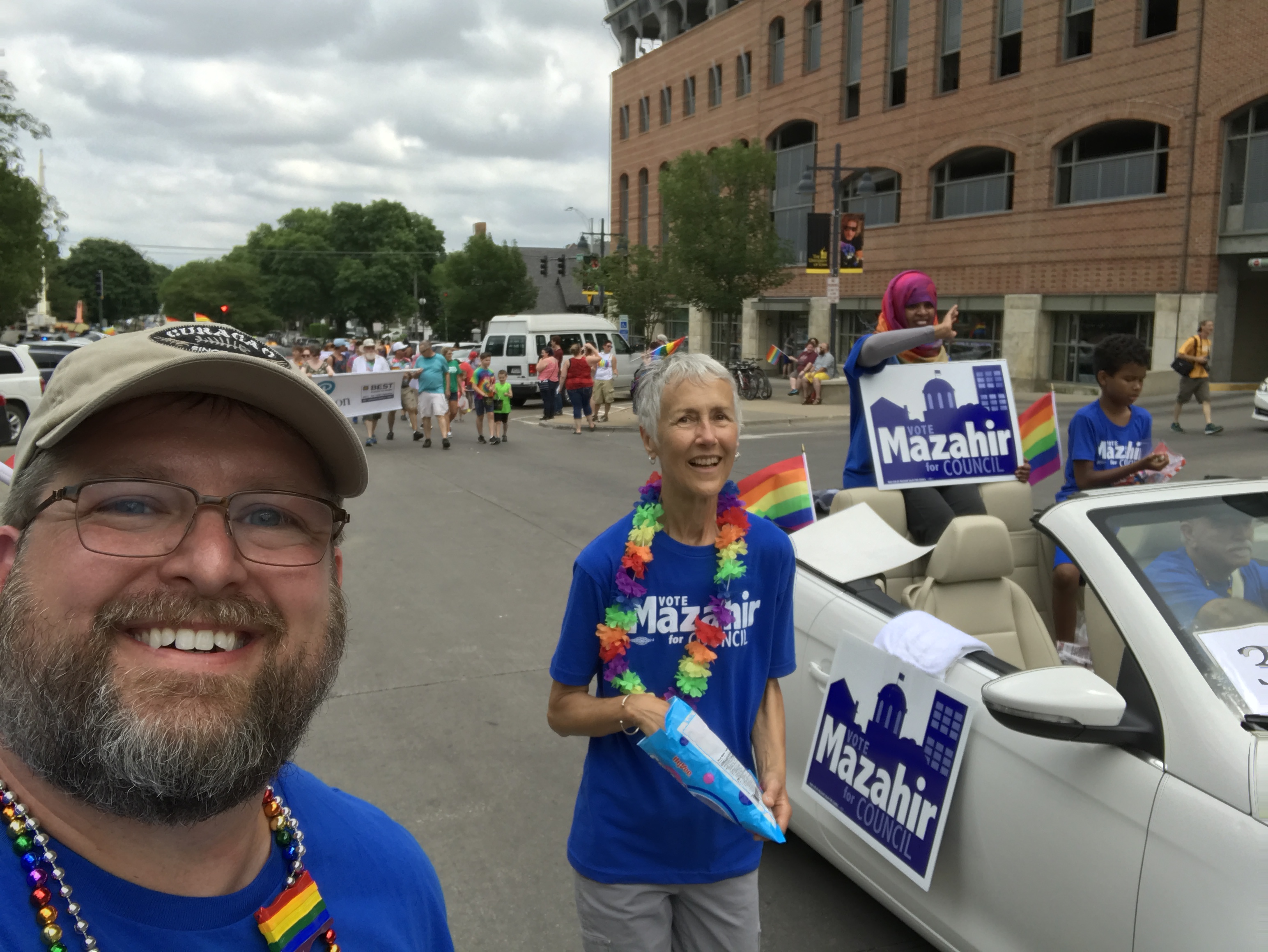 My activism has also meant helping out causes and working on issues as well as helping candidates, sometimes as a leader and sometimes by showing up for others. Over the years I have joined my voice with those in meetings, parades, and demonstrations for increasing the minimum wage, ending gun violence, protecting the bargaining rights of teachers and other working Iowans, promoting and protecting LGBTQ+ equality, gender equality, opposing Trump’s Muslim Ban, and speaking out that Black Lives Matter.